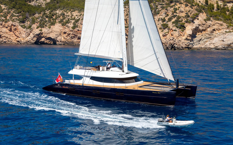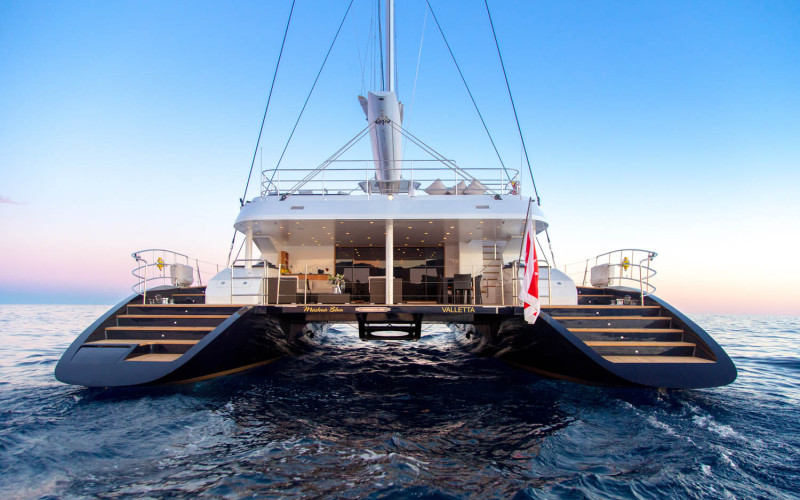 Mashua Bluu is one of the largest and most magnificent sailing catamarans on the water offering the highest level of comfort, safety and ease of handling. Should you like to cruise with your family or entertain your friends aboard, Mashua Bluu is sure to impress with her high-class, sleek elegance and sophistication. Spacious and simple to sail, she is designed to offer a unique sailing experience without compromising on comfort and luxury aboard. The “Blue Boat” stands for the unison with the sea. Mashua Bluu is a three decks sloop rigged catamaran, and offers the level of comfort of a motor yacht with the ambiences and feel of a sailing yacht.