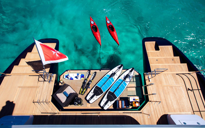 2 x Kayaks, Water skis, Wakeboard, Dive platform with dive equipment, "Jump" platform